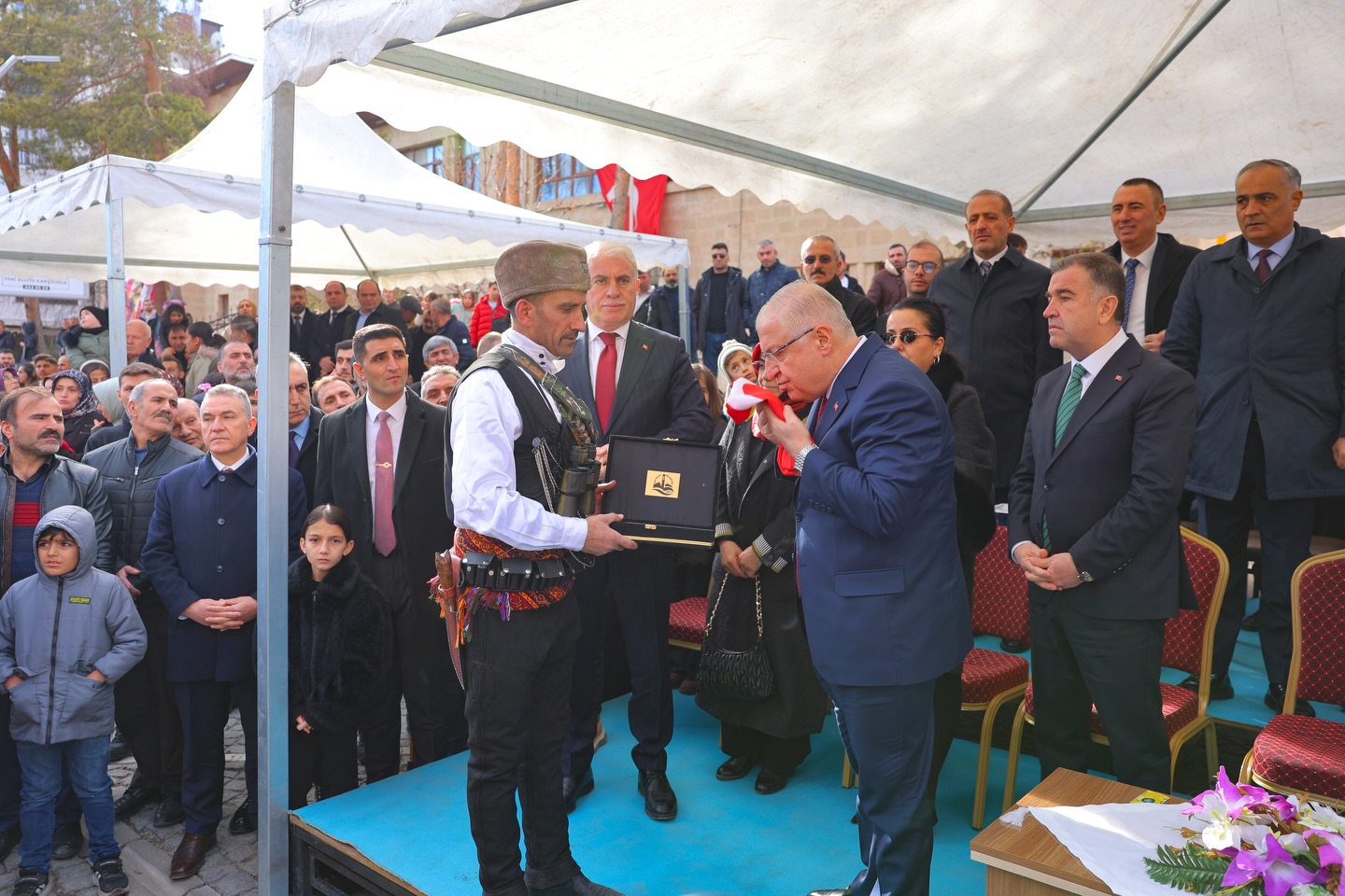 Başkan Memiş de günün kahramanına altın kemer kuşattı. Cumhurbaşkanı Recep Tayyip Erdoğan’ın tebrik telgrafının da okunduğu program, Bayburt Halk Oyunları ekibinin performansı ve 3. Ordu Bando Takımı eşliğindeki resmi geçit töreniyle sona erdi.
