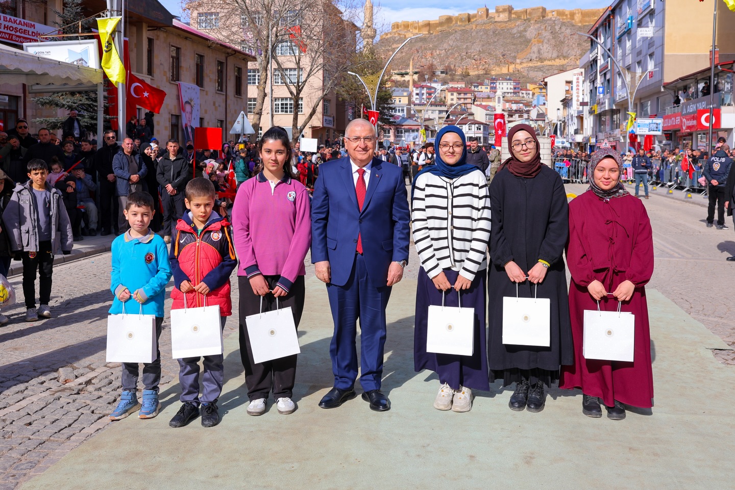 Törende hemşehrilerine seslenen Milli Savunma Bakanı Yaşar Güler, baba ocağı Bayburt’ta bulunmanın heyecanını paylaştı. Güler, "Bugün hep birlikte Can Bayburt’umuzun tarihindeki büyük kahramanlığı anmanın emsalsiz gururu içerisindeyiz. Bu toprakları bize vatan kılan şehitlerimizi ve gazilerimizi rahmetle anıyorum" ifadelerini kullandı.