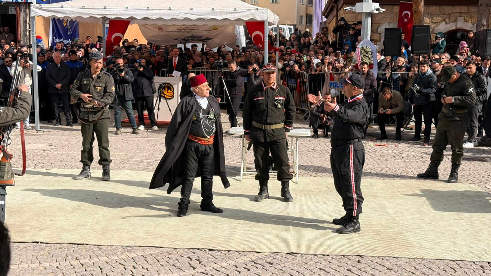Törenin en dikkat çekici anları, muhaceratın ve Ermeni mezaliminin ardından Bayburt’un milis kuvvetleri tarafından kurtarılmasının sahnelendiği tiyatro oyunu oldu. Vatandaşların ilgiyle izlediği canlandırmanın ardından, günün kahramanı tarafından Bakan Yaşar Güler’e Türk Bayrağı, Vali Mustafa Eldivan’a Kur’an-ı Kerim, Belediye Başkanı Mete Memiş’e ise şehrin anahtarı takdim edildi.
