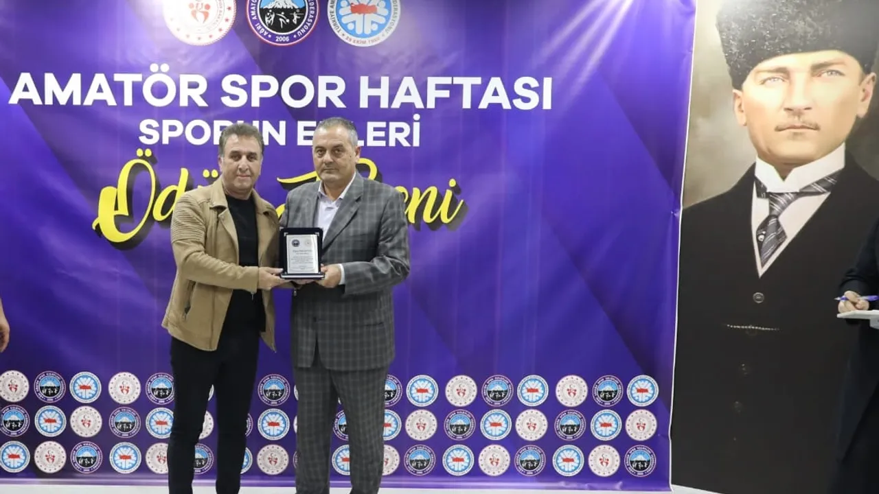 Amatör spora destek veren yerel basın ödülü Orta Doğu Gazeteciler Cemiyeti Başkanı Nihat Aydın'a takdim edildi.