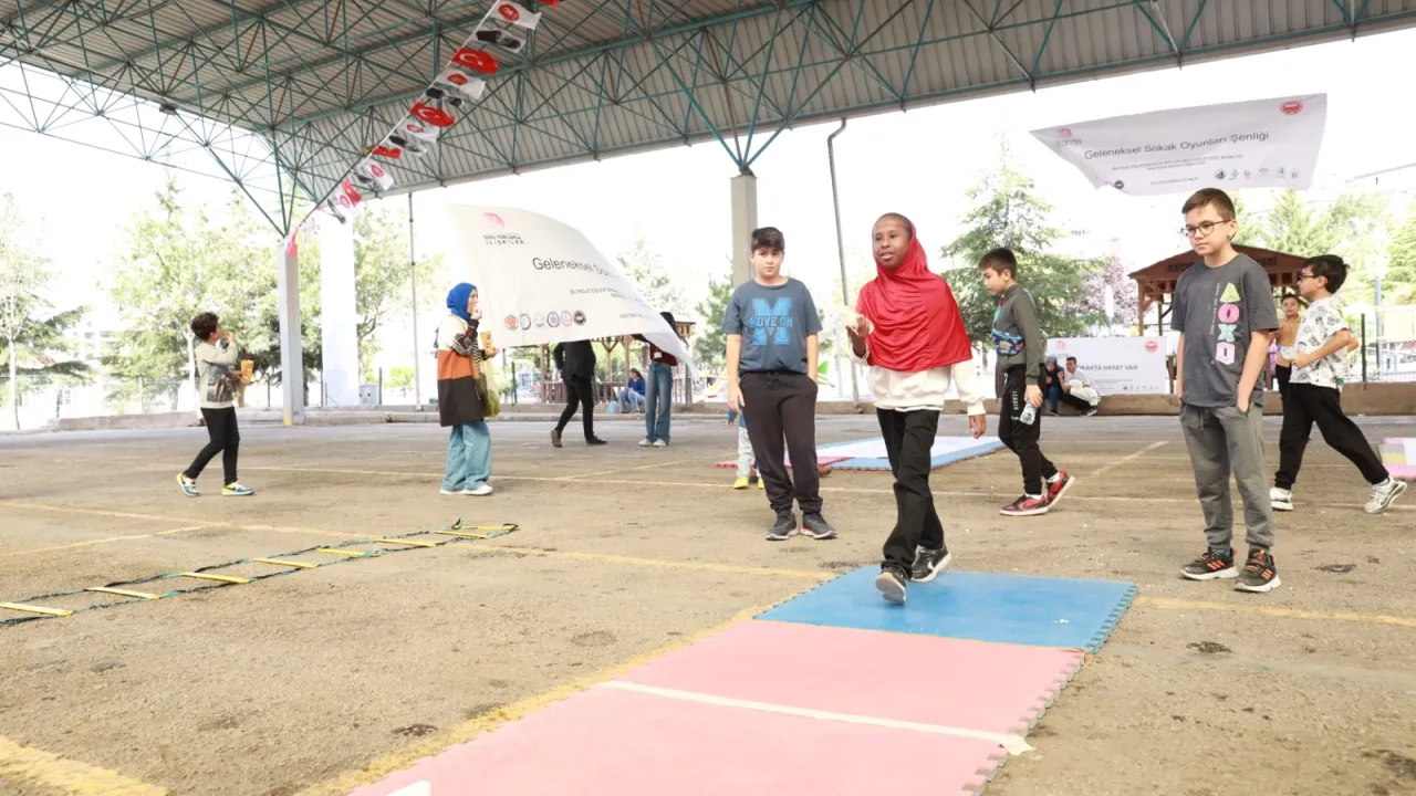 Ankara'da Keçiören Belediyesi ile Sokak Oyunları Federasyonu iş birliğiyle, unutulmaya yüz tutan sokak oyunlarını yeniden canlandırmak ve yeni nesillere aktarmak amacıyla “Sokak Oyunları Festivali” düzenledi.ANKARA (İGFA) - Ankara'nın Keçiören ilçesinde Yeşiltepe Pazar Yeri’nde gerçekleştirilirken etkinlik boyunca çocuklar; seksek, yumurta yarışı, halat çekme, çuval yarışı, at tut atışı, misket, ip atlama ve topaç gibi geleneksel oyunlarda doyasıya eğlendi.