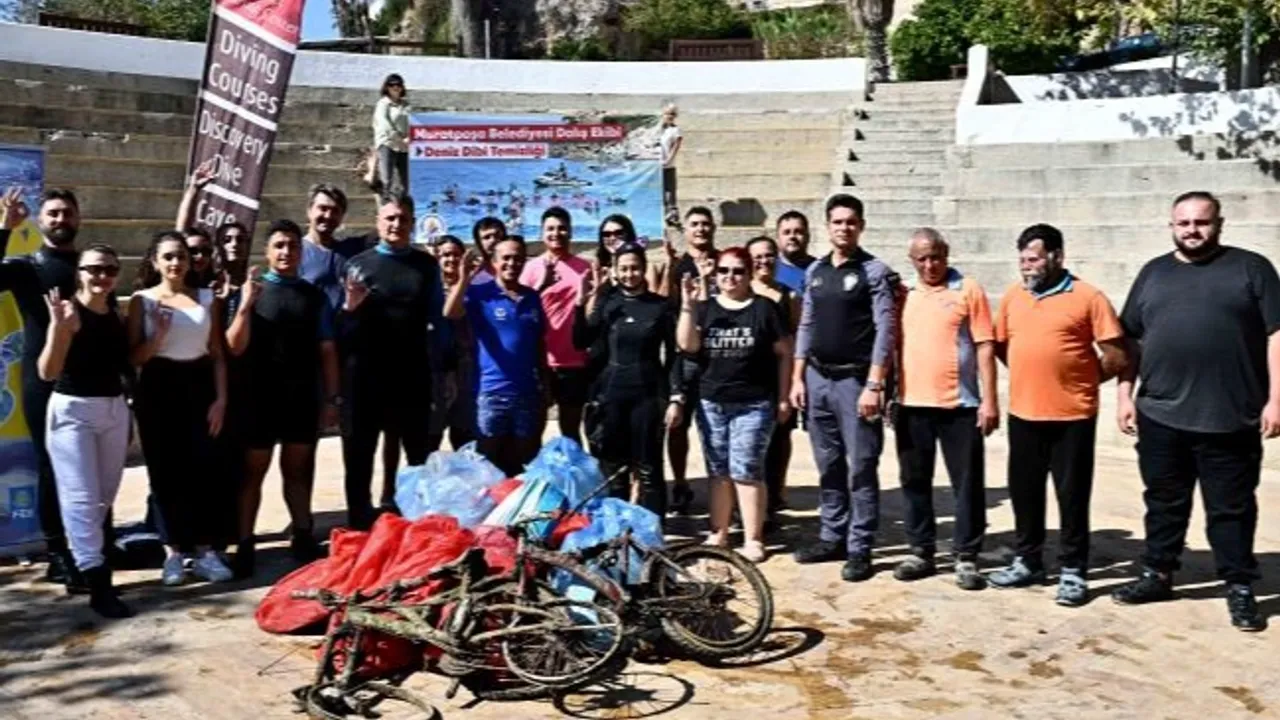 Antalya Muratpaşa Belediyesi’nin gönüllü dalgıç ekibi, yaz sezonunun ardından Kaleiçi Yat Limanı’nda deniz dibi temizliği gerçekleştirdi. Temizlikte iki bisiklet ve bir tabanca dahil çok sayıda atık çıkarıldı.ANTALYA (İGFA) - Antalya Muratpaşa Belediyesi’nin gönüllü dalgıç ekibi, yaz sezonunun ardından Kaleiçi Yat Limanı’nda deniz dibi temizliği yaptı.