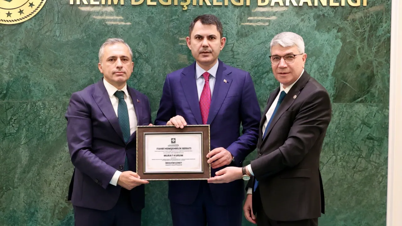Başkan Çenet, Osmaniye’de gösterdiği özverili çalışmalarından Bakan Kurum’a teşekkür ederek, “Özellikle 6 Şubat depreminden sonra tüm deprem illerine olduğu gibi Osmaniye'mize göstermiş olduğu o yakın ilgi için ve şehrimizin yeniden depreme dayanıklı bir şehir olarak inşasını sağladığı için Osmaniye Belediyesi Meclisi size Fahri Hemşehrilik beratı verme kararı aldı. Ben de bunu zatıalinize takdim ediyorum. Sadece deprem konutları değil, iş yerleri, çarşılar, pazarlar, meydanlar da yapıldı” ifadelerini kullandı.