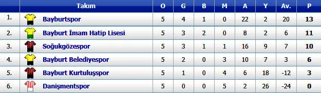 Lig’de 11 puanlı Bayburt İmam Hatip Lisesi ikinci, 10 puanlı Soğukgöze üçüncü durumda.