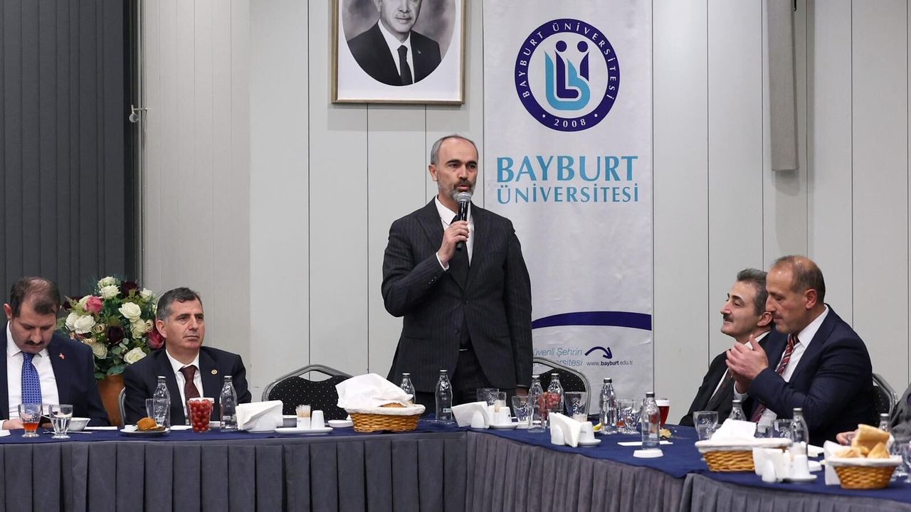 “Bayburt Üniversitesi Kalkındırma Vakfımızın geleneksel iftar programını, Millî Savunma Bakanımız Sayın Yaşar Güler’in kıymetli himayelerinde gerçekleştirmiş olmaktan büyük memnuniyet duyuyoruz. Bu anlamlı ve bereketli buluşmamıza teşrif ederek bizleri onurlandıran tüm misafirlerimize içten teşekkürlerimi sunuyorum. Başta programın hazırlanmasında emeği geçen Vakıf Yönetim Kurulu üyelerimiz olmak üzere tüm çalışma arkadaşlarımıza, organizasyona destek veren kurum ve paydaşlarımıza şükranlarımı ifade ediyorum. Ayrıca Vakfımıza destek sağlayan kıymetli iş insanlarımıza; öğrencilerimize sundukları burs imkânları, gençlerimizin akademik ve sosyal gelişimlerine katkıları, sosyal sorumluluk ve toplumsal fayda odaklı projelere verdikleri destekler dolayısıyla özellikle teşekkür ediyorum. Bu değerli katkılar sayesinde hem öğrencilerimizin eğitim hayatına güçlü destek sunuyor hem de üniversite–şehir–iş dünyası iş birliğini daha da güçlendirerek sürdürülebilir kalkınma hedeflerimize emin adımlarla ilerliyoruz.
