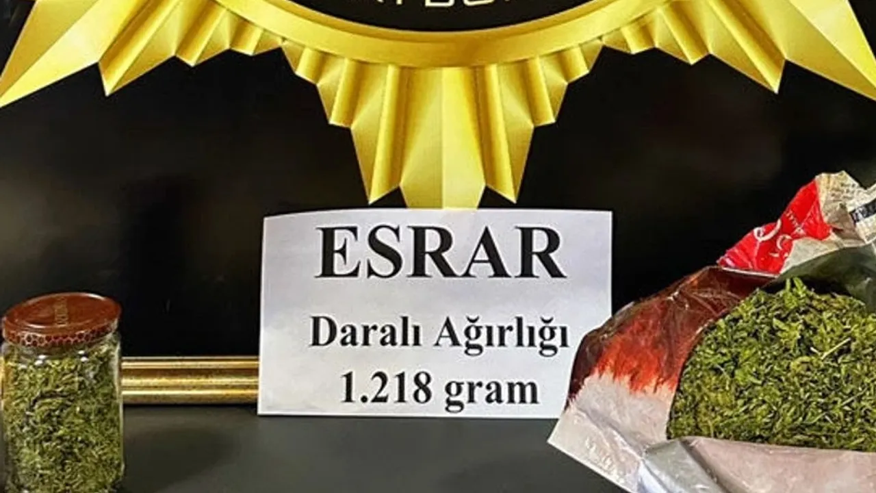 Şüphelinin ikametine ve iş yerine düzenlenen eş zamanlı operasyonda yapılan aramalarda; üç parça halinde, toplam 1 kilo 218 gram esrar maddesi ele geçirildi.