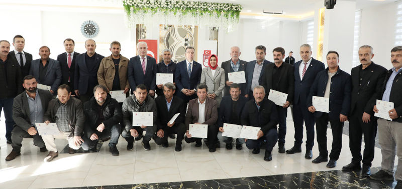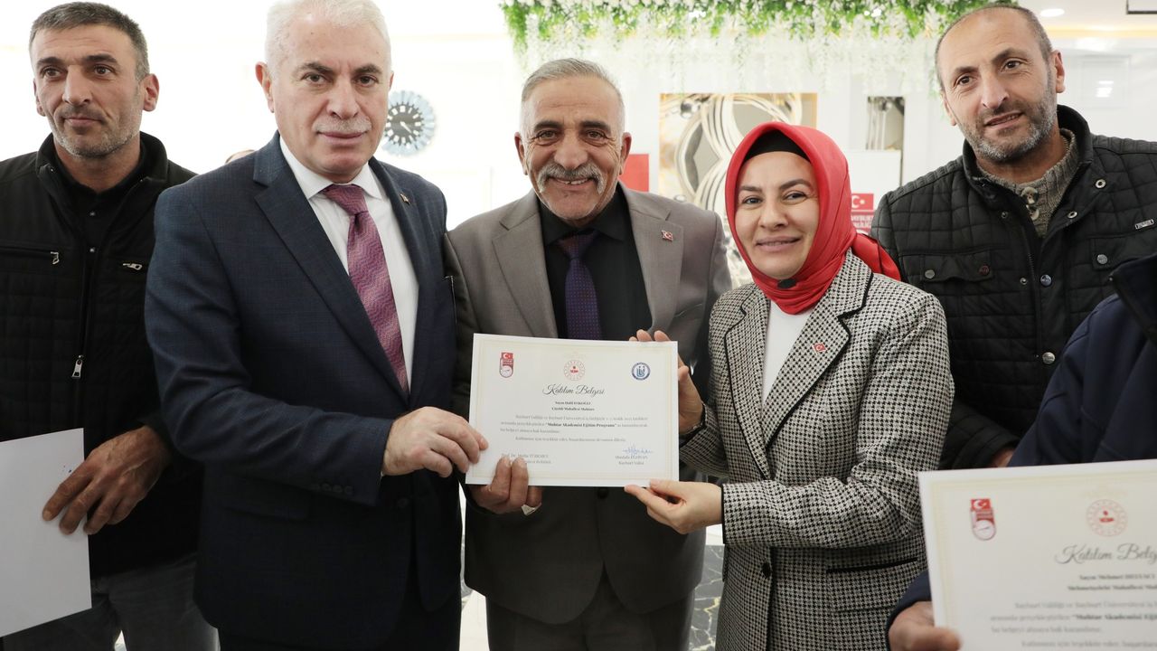 Üç gün süren eğitimlerin sona ermesiyle birlikte , Muhtarlar Akademisi katılım belgeleri, programa katılan protokol üyeleri tarafından muhtarlara takdim edildi.