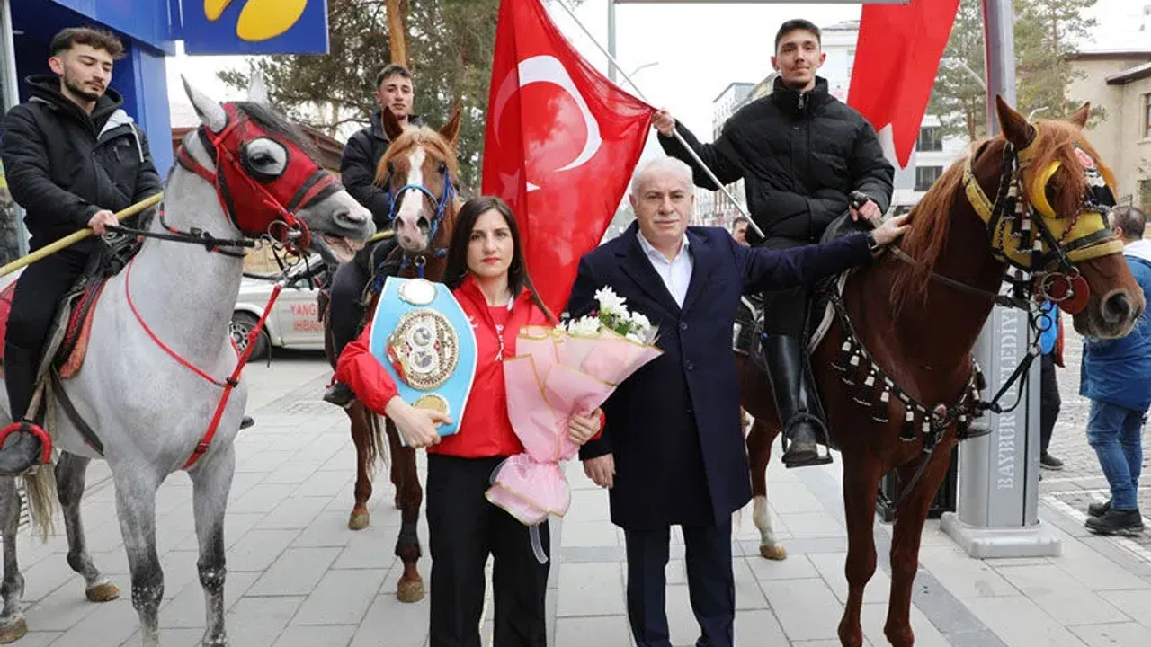 Dünya şampiyonu Elif Nur Turhan’ı kentin girişinde Bayburt Belediye Başkanı Mete Memiş ve çok sayıda vatandaş büyük bir heyecanla karşıladı. Belediye binasına kadar davul zurna ve atlı bir kortej eşliğinde getirilen milli sporcuya halk sevgi gösterilerinde bulundu.