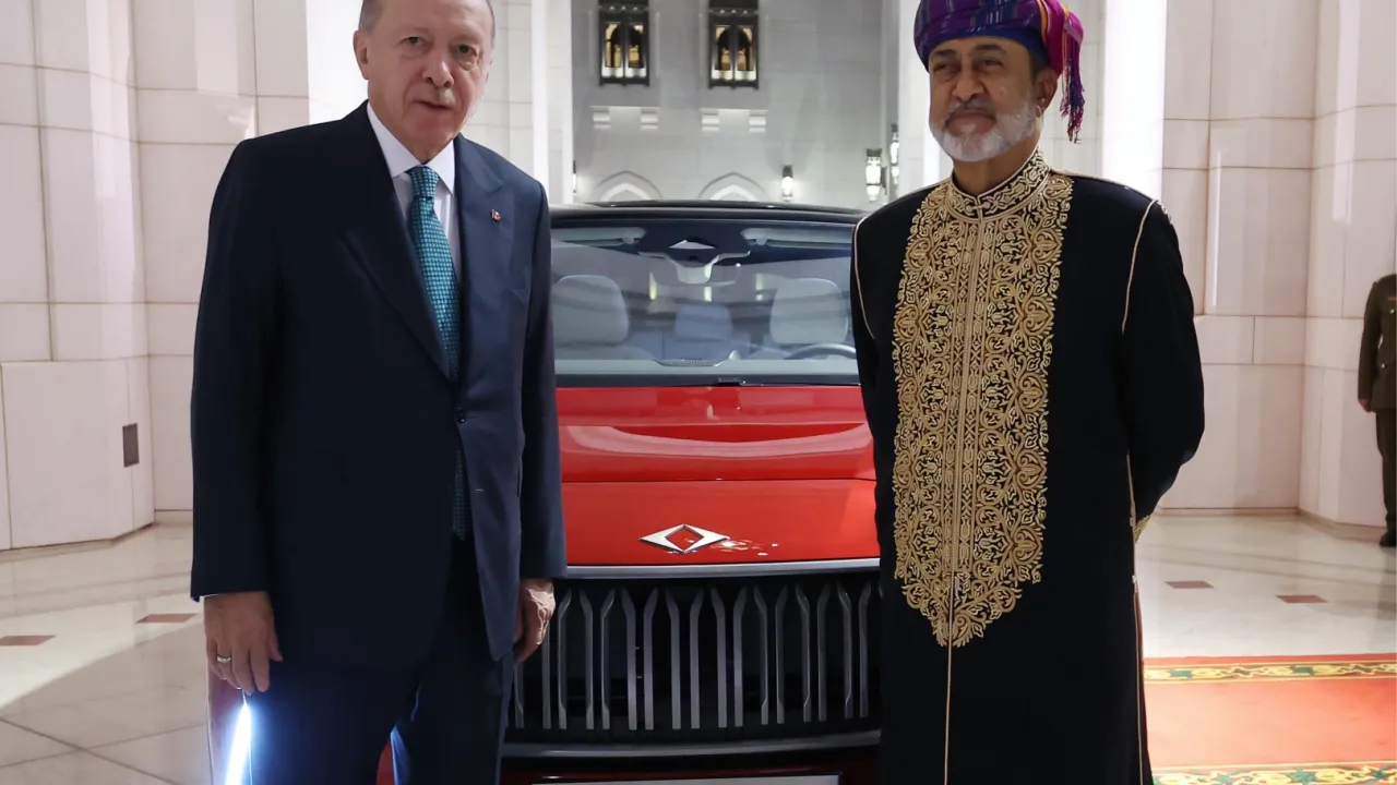Cumhurbaşkanı Erdoğan, görüşmenin ardından Umman Sultanı Heysem bin Tarık'a kırmızı renkte Togg hediye etti.