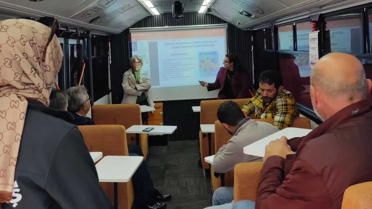Bu kapsamda, Sosyal Hizmetler Dairesi Başkanlığı Engelli Hizmetleri Şube Müdürlüğü ve BURULAŞ iş birliğiyle Organize Sanayi Bölgesi’nde görev yapan özel halk otobüsü şoförlerine yönelik ‘Erişilebilirlik ve engelli farkındalık eğitimi’ verildi.