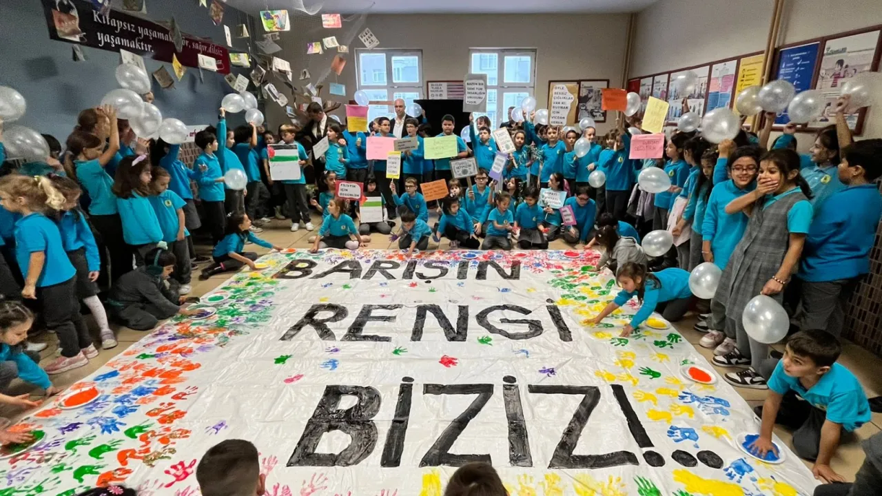 Okullarda düzenlenen farkındalık etkinliklerinde öğrenciler, Filistin halkına yönelik saldırılara karşı barış ve kardeşlik çağrısı yaptı