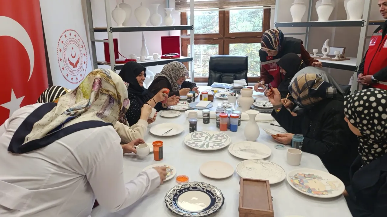 Erzurum'da şehit yakını kadınlar için çini, tezhip ve ebru kursları başlatıldı. Aile Bakanlığı'nın Sanata Teşvik Programı ile geleneksel sanatlarla ruhsal destek sağlanıyor. Katılımın yüksek olduğu program sonunda yapılacak eserler özel sergilerde görücüye çıkacak.Gamze İSPİRLİ / ERZURUM (İGFA) - Aile ve Sosyal Hizmetler Bakanlığı tarafından yürütülen “Sanata Teşvik ve Sanatla Yaşam Programı” kapsamında Erzurum’da şehit yakını kadınlara yönelik çini, tezhip ve ebru kursları başlatıldı.