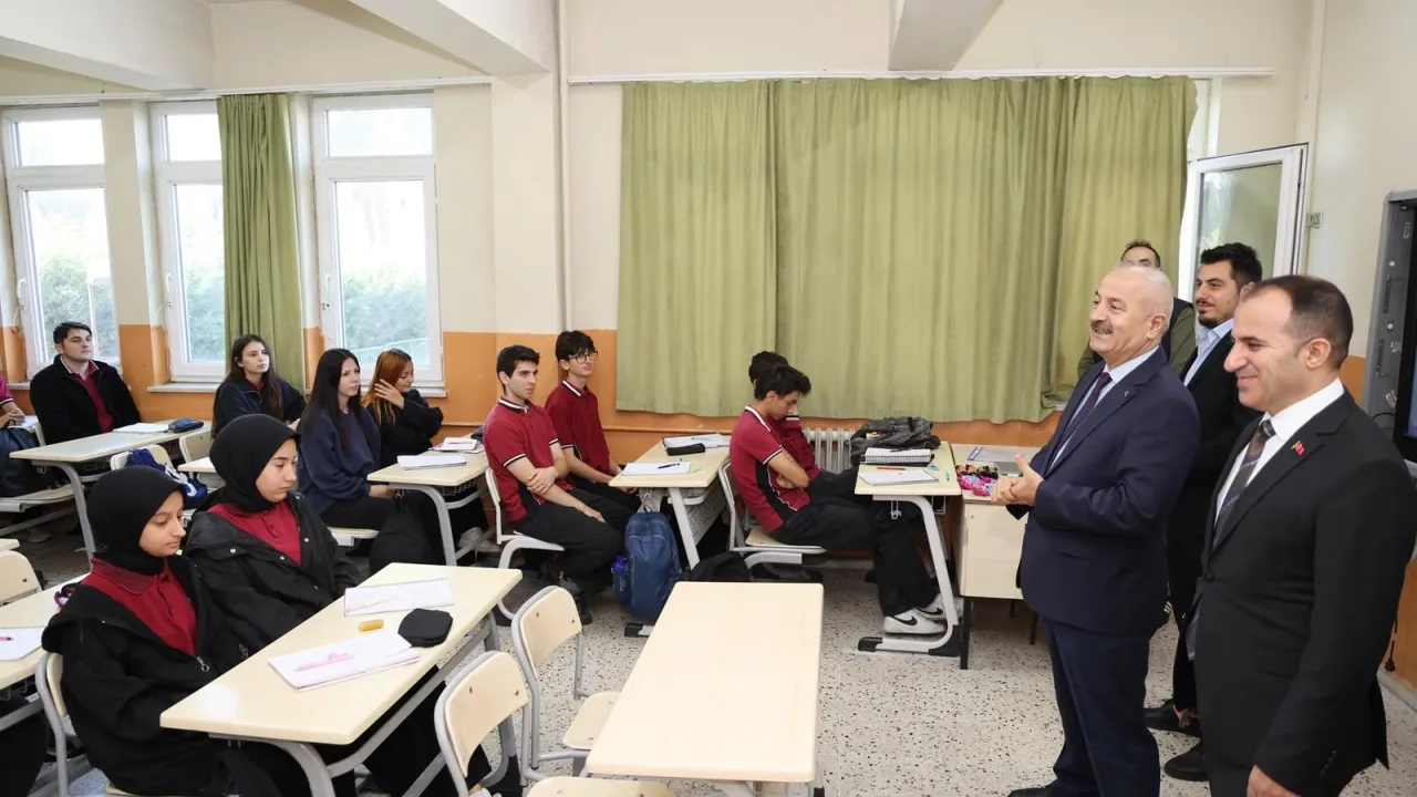 Sınıfları da ziyaret eden Başkan Büyükgöz, öğrencilerle sohbet etti. Daha sonra öğretmenler odasında öğretmenlerle bir araya gelen Büyükgöz, onların taleplerini ve önerilerini dinledi.