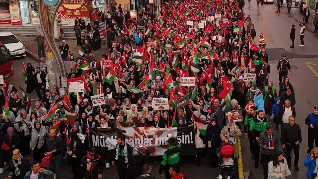 Gazze’de yaşanan insanlık dramının ikinci yıl dönümünde, Gebze Belediyeler Birliği ve Gebze Sivil Dayanışma Platformu öncülüğünde düzenlenen etkinlik, tarihe geçecek bir tabloya sahne oldu.KOCAELİ (İGFA) - Gebze Belediyeler Birliği ve Gebze Sivil Dayanışma Platformu öncülüğünde düzenlenen yürüyüş, binlerce kişinin katılımıyla şehir tarihinin en büyük dayanışma etkinliklerinden biri olarak kayıtlara geçti.