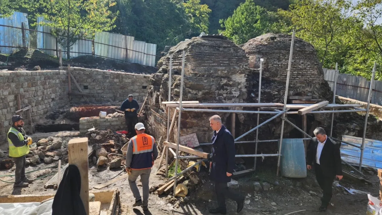 Gölcük Belediyesi’nin ilçedeki ecdat yadigarlarını ihya etme hedefiyle başlatılan, Yukarı Halıdere tarihî Osmanlı hamamında restorasyon çalışmaları devam ediyor.KOCAELİ (İGFA) - Gölcük Belediyesi'nin başlattığı çalışma ile Yukarı Halıdere'de bulunan tarihi Osmanlı dönemi hamamı, yeniden hayat buluyor. Bu kapsamda “1. grup korunması gerekli taşınmaz kültür varlığı” olarak tescilli olan Yukarı Halıdere tarihî Osmanlı dönemi hamamında restorasyon çalışmaları devam ediyor. Tarihi hamamı ziyaret ederek incelemelerde bulunan Gölcük Belediye Başkanı Ali Yıldırım Sezer, çalışmalar hakkında yetkililerden bilgi aldı.
