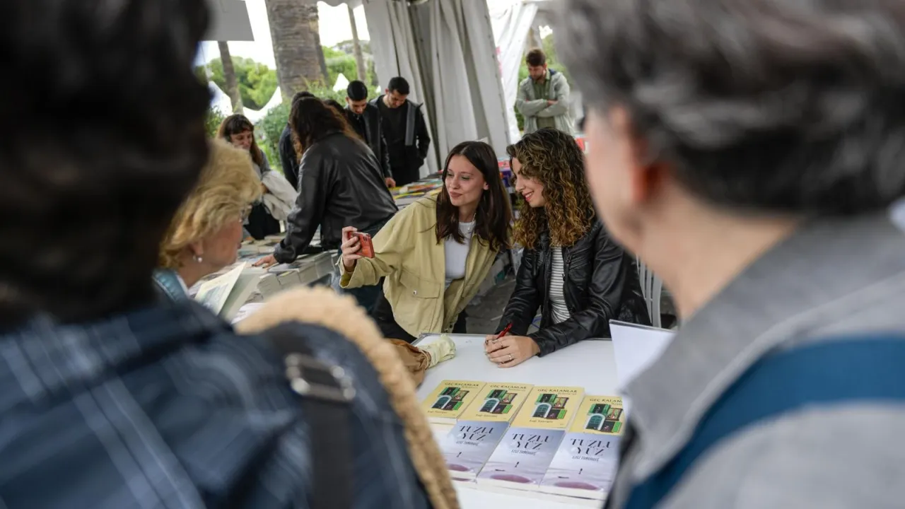 İzmir Büyükşehir Belediyesi ev sahipliğinde kapılarını açan 6. İzmir Kitap Fuarı, edebiyat dünyasının birbirinden değerli isimlerini İzmirli kitapseverlerle buluşturdu. İzmirlilerin yoğun ilgi gösterdiği fuarda Başkan Dr. Cemil Tugay da gençlerle buluştu.İZMİR (İGFA) - İzmir Büyükşehir Belediyesi’nin ev sahipliğinde, İZFAŞ ve TACT Fuarcılık iş birliğiyle 17-26 Ekim tarihlerinde Kültürpark’ta düzenlenen İZKİTAPFEST – 6. İzmir Kitap Fuarı’na İzmirliler ikinci gününde yoğun ilgi gösterdi. Kültürpark’ta kitapseverlerle kucaklaşan organizasyonda Türk ve dünya edebiyatının birbirinden değerli yazarları söyleşi, imza stantları ve çok sayıda etkinlik sayesinde okurlarla buluştu. 7’den 70’e İzmirliler yağışlı havaya rağmen Kültürpark’a akın ederek kitap fuarının tadını doyasıya çıkardı.