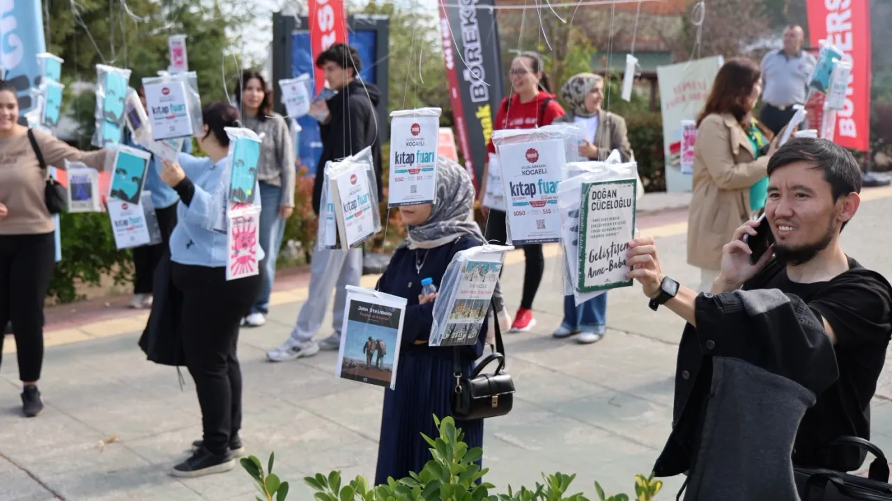15. Kocaeli Kitap Fuarı öncesinde geleneksel hale getirilen “Ağaçlar Kitap Açtı” etkinliği bu yıl da şehri edebiyat kokusuyla buluşturdu. Sabahın ilk ışıklarında İzmit Cumhuriyet Bulvarı ve Gebze Kent Meydanı’nda başlayan etkinlik, saat 11.00’de Kocaeli Üniversitesi’nde devam etti.KOCAELİ (İGFA) - Kocaeli Büyükşehir Belediyesi’nin Kitap Fuarı öncesinde geleneksel hale getirdiği “Ağaçlar Kitap Açtı” etkinliğinin heyecanı bu kez Kocaeli Üniversitesi’nde yaşandı. Kocaeli Üniversitesi Rektörü Prof. Dr. Nuh Zafer Cantürk, Rektör Yardımcısı Prof. Dr. Elif Öğüt de öğrencilerle birlikte kitap topladı. Rektör Cantürk, etkinlikte yaptığı konuşmada, “Kitap fuarı şehrimizin marka etkinliklerinden biri. Bu fuara bütün öğrencilerimizi davet ediyoruz. Büyükşehir Belediyesi ile birlikte biz de aktif rol alıyoruz. Kitap en önemli zenginliğimiz, çok okumamız lazım. Ayrıca görme engelli öğrencilerimiz için hazırladığımız kabinde, fuar boyunca kitap okuma ve seslendirme çalışmaları sürecek. Hep birlikte bu büyük etkinlikten faydalanalım” ifadelerini kullandı.