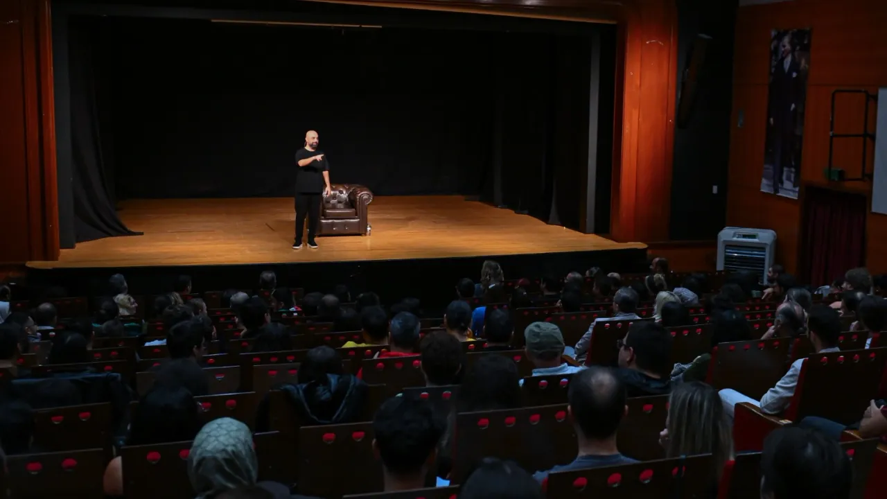 Kariyerine sosyal medya platformlarında paylaştığı skeçlerle başlayıp kısa sürede geniş bir takipçi kitlesine ulaşan Tahsin Hasoğlu, BKM Mutfak çatısı altında yaptığı tek kişilik gösterisiyle İZKİTAP kapsamında sahne aldı. İzmir Sanat’ta seyirciyle buluşan Hasoğlu, İzmir’de olmaktan duyduğu memnuniyeti dile getirdi. Gösterisinde, kadın-erkek ilişkilerinden aile dinamiklerine ve sinemadaki oyunculuk deneyimine kadar birçok konuyu esprili bir dille anlatan Hasoğlu, sahnedeki enerjisiyle izleyicilerin beğenisini topladı. Hasoğlu’nun, gösteriye gelirken fuarı gezerek ziyaretçilerle yaşadığı diyalogları ve “Bizans Oyunları” filmindeki rolü gibi kişisel deneyimlerini mizahi bir dille anlatması büyük ilgiyle karşılandı. İZKİTAP 2025, 26 Ekim’e kadar yayınevlerini, sahafları ve edebiyat dünyasının birbirinden değerli isimlerini İzmirli kitapseverlerle buluşturmaya devam edecek.