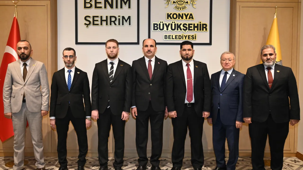 Konya Büyükşehir Belediyesi ev sahipliğinde düzenlenecek UCLG-MEWA Kongresi için Konya’ya gelen İdlib Valisi Muhammad Saif al-Din Abd al-Rahman, Hama Valisi Abdul Rahman Alsahyan, Şam Vali Yardımcısı Musab el-Bedavi ve beraberindeki heyet, UCLG ve Konya Büyükşehir Belediye Başkanı Uğur İbrahim Altay’ı ziyaret etti. KONYA (İGFA) - Birleşmiş Kentler ve Yerel Yönetimler Orta Doğu ve Batı Asya Teşkilatı (UCLG-MEWA) Kongresi için Konya’ya gelen Suriyeli heyet, UCLG ve Konya Büyükşehir Belediye Başkanı Uğur İbrahim Altay’ı ziyaret etti.